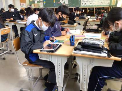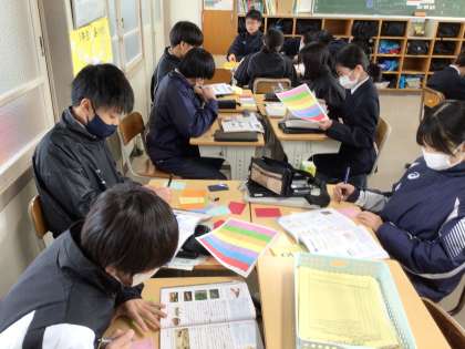 理科の授業で、生徒たちがカードに何か記入していました。