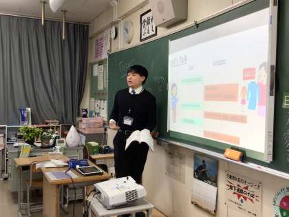 上の写真から2年1組社会、2年2組英語の様子です。2年2組の英語はALTの授業でした。