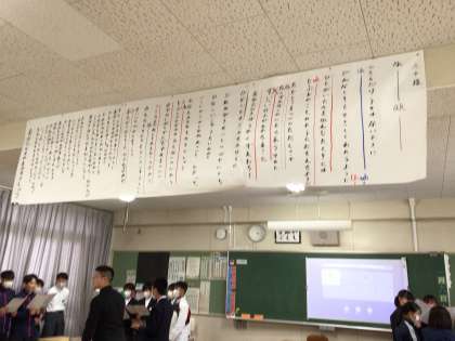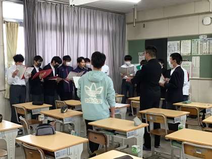 各学級でパート練習をしています。パートリーダー、頑張っていますね。学年の先生が学級関係なく各学級を回りながら生徒と一緒に歌ったり感想を言ったりして練習が進んでいます。