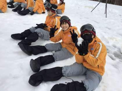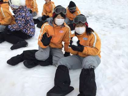 雪上運動会!イェーイ!疲れた顔をせず盛り上がる良い子たち。