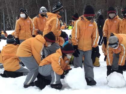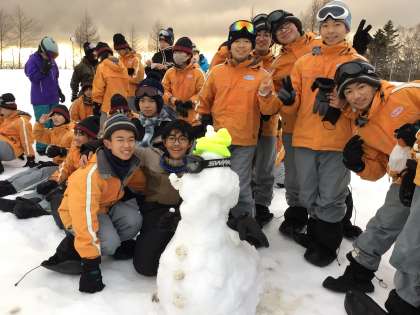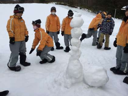 ゲレンデのすみの方にはふかふかな雪が積もっていて、大きな雪だるまができました。