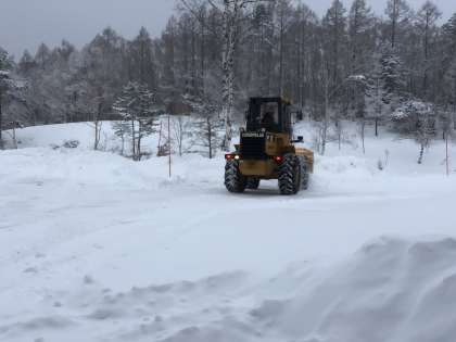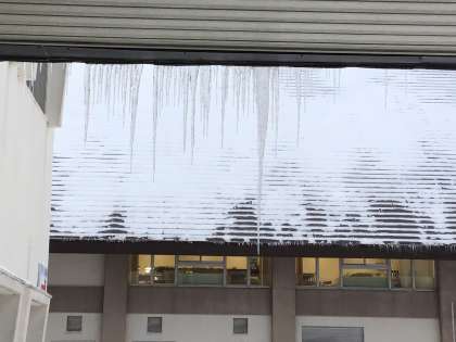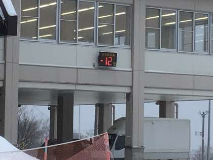 交流の家の外にある気温計はマイナス12度を指しています。除雪作業が始まっています。つららの長さが昨日よりさらに伸びた感じがします。今日も頑張りましょう!