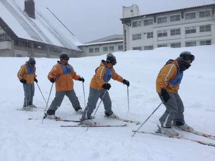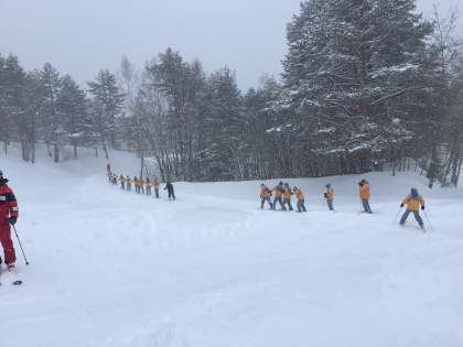 午前の実習の様子です。スキーが外れてしまった時に仲間同士で助け合う生徒の姿がありました。「大丈夫か」「慌てずに」「ストックは持っててやるからまずスキーを履こう」‥優しいですね。実習の2日目になり、みんな少しずつゆとりが出てきたのかもしれません。良い光景でした。