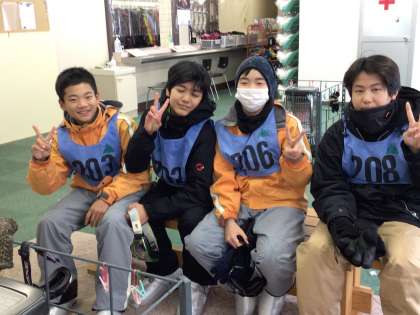 「あったかい!」と言いながらクラブハウスに入ってくる生徒たち。少し休憩したらまた元気よくゲレンデに出ていきます。「楽しい」「もっとやりたい」「明日もやりたい!」良かったです。