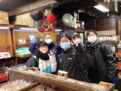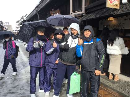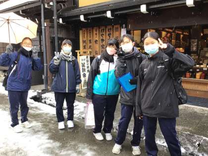 高山満喫中 古い街並みに雪がふわふわ 風情があります