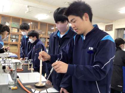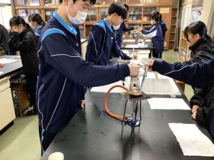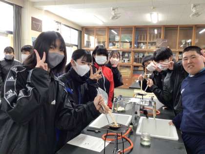 理科の実験の様子です。写真からもザラメの香ばしい匂いが漂ってきそうです。