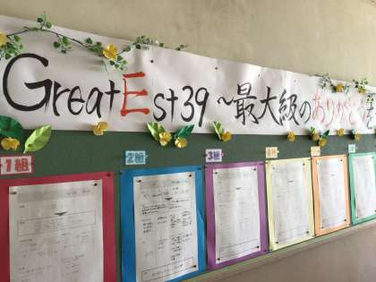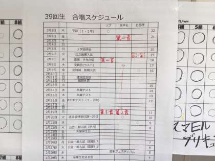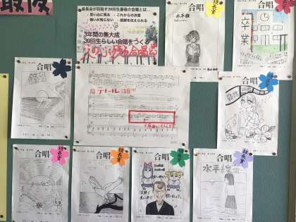 3年生は土日や祝日を抜くと卒業までの残りの登校日が20日を切っています。卒業式の歌の練習にも熱がこもってきました。卒業の歌は「水平線」という合唱曲です。学年掲示板や学級の廊下に、合唱曲のイメージ画が掲示してあります。39回生の思いがこもった合唱を楽しみにしています。