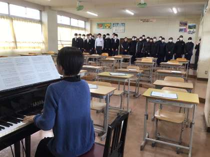 2月と思えないほどの暖かい日が続いています。3年生は卒業式と今日を入れて残り10回の登校日になりました。卒業の歌が校舎のどこからともなく響いてくるようになりました。