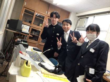 今日の放送は生徒会企画です。生徒会長とゲストが放送室にやってきました。楽しい放送をよろしくお願いします。