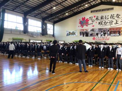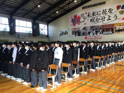午後の卒業式練習の様子です。1、2年生が体育館で練習をしていました。令和元年3月の卒業式を最後に、全校生徒が揃っての卒業式は行っていませんでした(コロナ禍の影響です)今年度は在校生も式に参加して卒業生の門出を祝います。ちょうど歌の練習を行っていました。式の練習が始まったばかりですが良い声が響いていました。