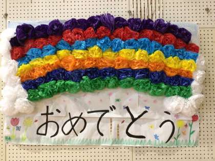 卒業生を送る会には1、2年生が劇、音響、飾り付け、プレゼント、招待状など、たくさんの準備をして今日を迎えました。会場の飾り付けやプレゼントなどについて舞台上のスタッフから3年生たちに紹介がありました。後輩がしてくれたことに「ありがとー!」という感謝の言葉と拍手が3年生から自然に湧き起こりました。とても心温まる光景でした。