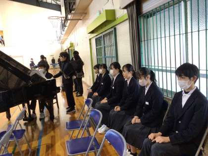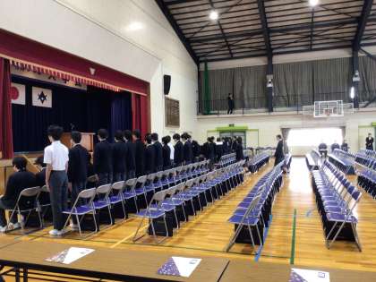 1、2時間目に卒業式予行練習を行いました。練習といっても予行練習は本番どおりに流していきます。