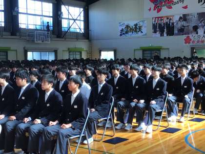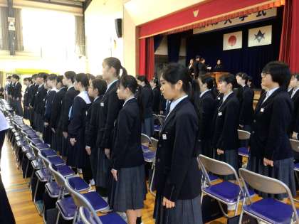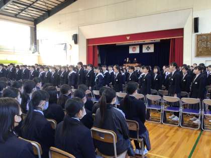 このように全校生徒が揃って卒業式を行うのは令和元年3月の卒業式以来です。部活動でお世話になった先輩、学校行事ですばらしい姿を見せてくれた先輩、それを後ろで見守る後輩たちの姿。当日の卒業式も、おごそかで感動的な式になることと思います。