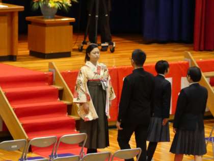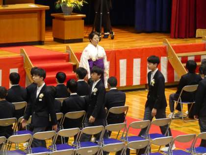 卒業式の様子です。在校生が奏でるピアノに迎えられて卒業生が入場してきました。