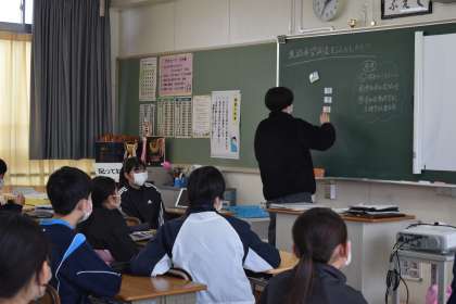写真は先週の2年生の様子です。3年生が卒業し、4月から最高学年となる2年生。今まで職場体験学習、高校調べなどの活動を行ってきていますが、3年生では、いよいよ具体的に志望校を決めて受験に臨むことになります。