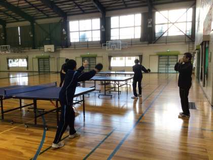 体育館では卓球部とバスケ女子が練習していました。いずれも部活動指導者の方が来てくださり、競技の専門性を生かした指導をしていただいていました。休日にご指導に来てくださり頭が下がります。ありがとうございます。