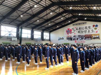 8時半、新3年生が入学式準備のために登校してきました。久しぶりに友達に会って嬉しそうな表情の生徒たちです。なんとなく、春休み中に体が大きくなり、3年生らしい雰囲気になったなぁと感じます。