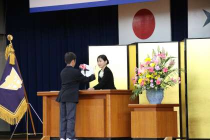 担任の先生から新入生一人一人の名前が呼ばれ、良い返事ができました。2年生、3年生の進級認定も行いました。