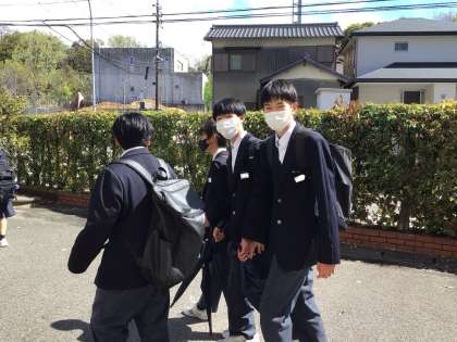 今日の風雨で桜がずいぶん散ってしまいましたが、花の後には瑞々しい若葉が顔を覗かせています。明日も元気に登校してくださいね。