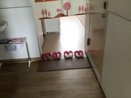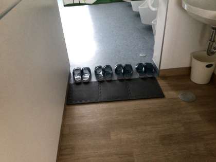 美しく揃ったスリッパ、素晴らしい。朝の教室、窓が開けられています。電気がついている教室もあります。生徒の登校前から担任の先生たちが色々と準備をしています。今日もがんばりましょう。
