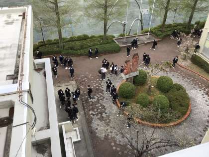 7時50分、生徒たちがぼちぼち登校してきました。