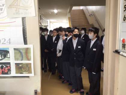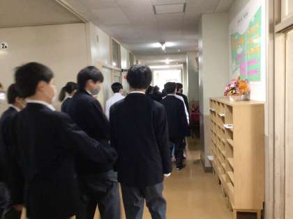 今日の1時間目、1年生が担任の先生に連れられて校内の色々なところを見学しました。職員室への入室の仕方も代表生徒が「失礼します。○年○組の⚪︎⚪︎です。⚪︎⚪︎先生に用があってきました」と実際にやってみて、みんなで確認しました。