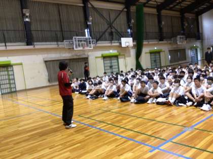 3、4時間目を使って外から講師の方をお招きし、1年生対象の交通安全教室を行いました。