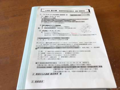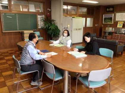 写真は、先ほど校長室で行った週に1度の会議の様子です。コーディネーターさん、校長、教頭で毎週会議をもち、常に連携、情報交換を図って、地域とのつながりを大切に教育活動を進めています。