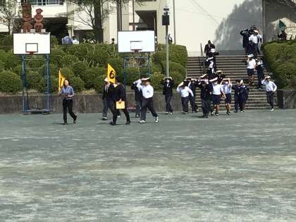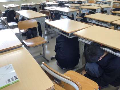これは昨日行った避難訓練の様子です。新しい学年になって教室の位置が変わり、避難経路を確認するためにも、年度はじめには多くの学校で避難訓練が行われます。近年、各地で地震が頻発しています。こうした機会をとらえて防災意識を高めてほしいと思います。