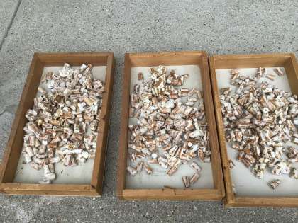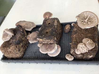 しいたけの菌打ちの様子です。中学校でしいたけ栽培?