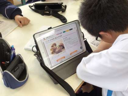 これは1年生の技術科の授業の様子です。技術科では材料と加工の技術、エネルギー変換の技術、情報の技術、生物育成の技術の4分野を学習します。興味津々です。