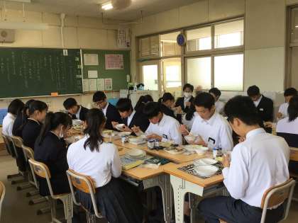 この4月から対面での給食に戻しています。雰囲気はクラスによって様々です。ムードメーカー的な子が班にいると、自然と会話が弾むようです。