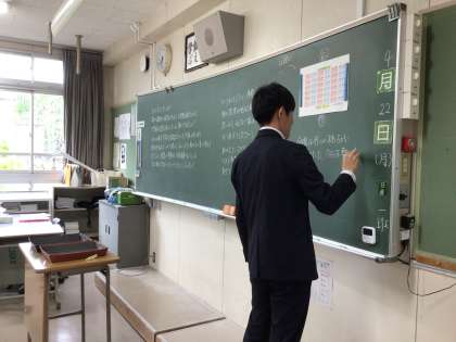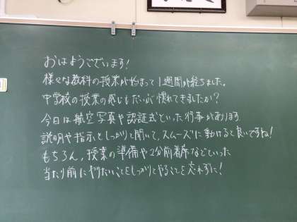 朝から教室に響くチョークの音。生徒が登校してくる前に教室の電気をつけたり、黒板を書いたり、窓を開けたりと、先生たちの1日は始まっています。今7時50分。ぼちぼち生徒が登校してきます。先生たちはそれぞれの場所で生徒を迎えます。