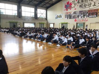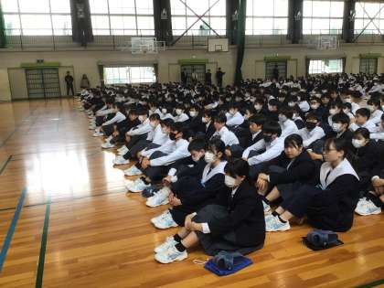 5時間目、体育館にて前期委員会の委員長、生徒議会議長、各学級の級長の認証式を行いました。前期生徒会役員については3月に認証式を行っています。認証を受けた生徒は、全員、堂々とした返事で大変立派でした。半年間、委員会や生徒議会、各学級をリードする立場で頑張ってください。