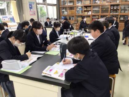 1年3組の理科の授業です。植物のつくりについて学んでいました。植物のつくりについては小学校でも学びますが、中学校ではより詳しく学習します。出てくる言葉も、より「理科的」な感じになっていました。しっかり勉強してくださいね。