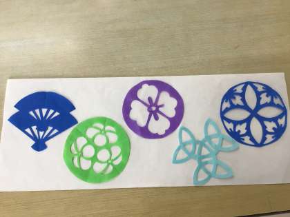 今日は折り紙で文様づくりを試しましたが、実際に作品を作るきには和紙で作った文様モチーフを土台となる紙に貼り、中にライトを入れて仕上げるとのことです。きっととても素敵な作品ができますね。美しいものに触れると心が豊かになりますね。