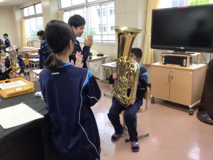 「すごい、すごい、音が出たね」先輩も後輩も笑みがこぼれます。