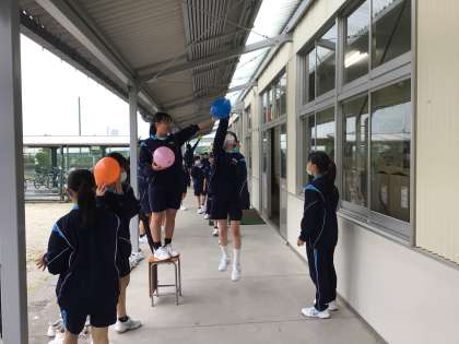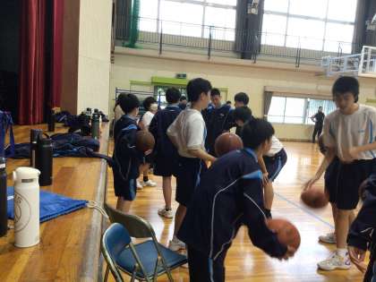体験入部の様子です。先輩たちが先輩らしい表情で張り切って後輩を指導しています。