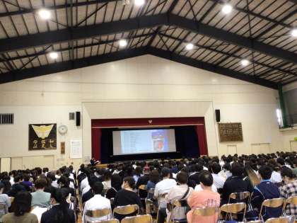 3、4時間目に体育館で行っている修学旅行・進路説明会の様子です。今年の修学旅行は6月11日(火)から13日(木)です。