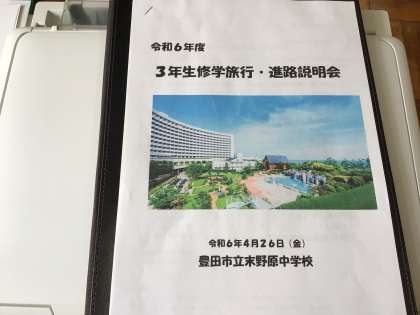 生徒はとても楽しみにしているようで、東京の観光地の写真やホテルの写真(先生たちが事前に下見に行って撮ってきた写真です)やしおりをお家の方と見ながら、時折親子で笑顔がこぼれていました。思い出に残る修学旅行にしたいと思います。