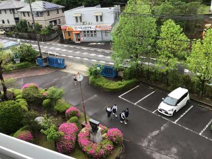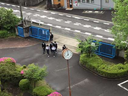 8時の登校風景です。朝ごはんをしっかり食べて早すぎないように登校してくださいね。昇降口が開く8時に合わせて先生たちは昇降口や各階の廊下、階段等に分かれて待機し、生徒の登校を迎えます。