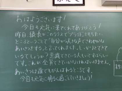 励ましの言葉だったり、嬉しい言葉だったり、もうちょっと頑張れるといいなあという言葉だったり。生徒の様子を思い浮かべながら、静かな教室で黒板に向かう担任の後ろ姿が目に浮かびます。
