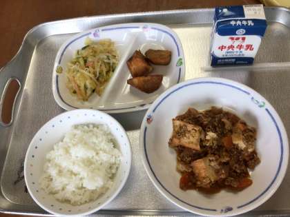 今日も美味しそうです。時間になると食べられる給食、ありがたいですね。