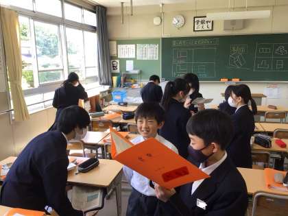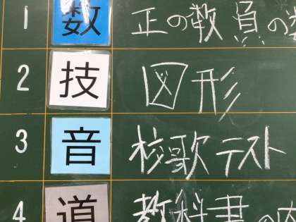 2時間目が終わった後の放課の様子です。校長室から一番近い1年1組の教室から生徒たちの歌声が聴こえてきました。次の授業は音楽。校歌のテストです。