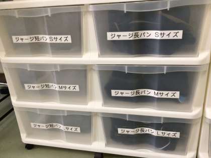 地域支援室の様子です。ハンガーや引き出し式衣装ケース等を地域支援室で購入し、ボランティアのお母様方がサイズ別に綺麗に仕分けをしてくださいました。ご協力いただいた皆様、ありがとうございます。引き続き地域支援室の活動へのご協力をよろしくお願いします。