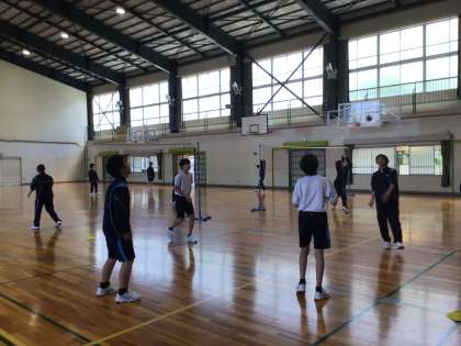 4時間目、体育館で2年7組が体育をしています。ボールをつなぐのになかなか苦戦していますが楽しそうにやっています。突き指をしないように&顔面でボールを受けないように気をつけてね!