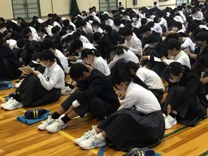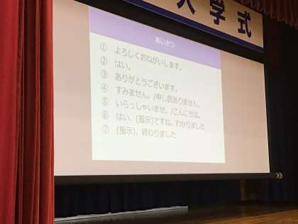 写真はあいさつの大切さを学ぶ生徒たちの様子です。実際に挨拶や言葉遣いを声に出して練習したり、メモを取ったりしながらマナー講座を受けました。