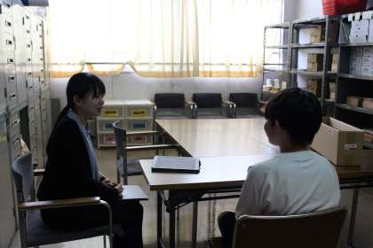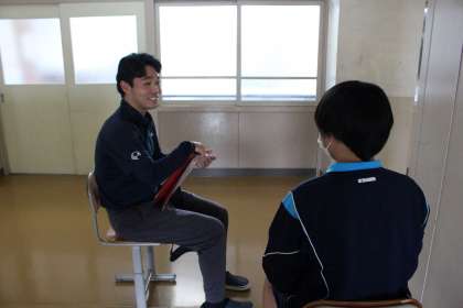 先生と対面に座ると緊張するかもしれませんね。そのため、本校では「90度法」を用いて斜めに座ることで、なるべく生徒がリラックスして話せるようにしています。日ごろ言えないこともこうした機会があると話しやすいかもしれません。