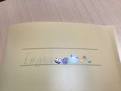 中学生もシールが嬉しい!生徒たちは、もらったシールを結構喜んで本の表紙やファイルに貼っていました。大事そうにシールが貼ってあるファイルをタブレットで撮らせてもらいました。微笑ましいです。英語の学習、がんばりましょう!