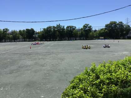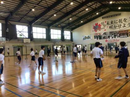5時間目の様子です。運動場では3年1組と2組がフライングディスクを使った競技「アルティメット」に取り組んでいました。チームで課題を話し合って、より良いゲームに繋げようとしています。体育館では2年5組と6組がバレーボールの練習に取り組んでいました。爽やかな風が吹いています。